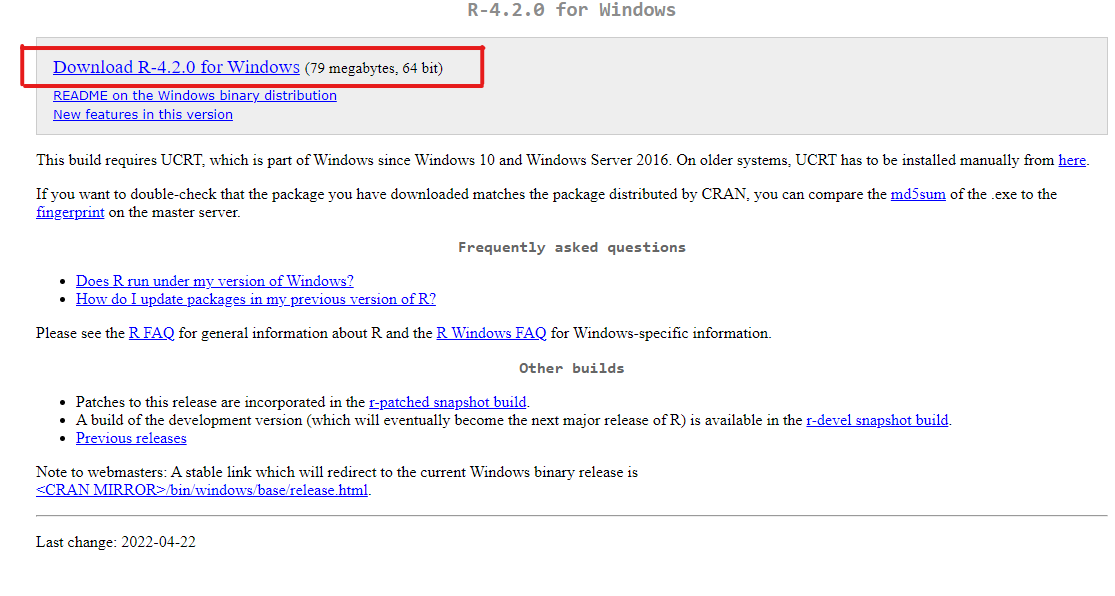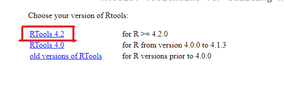 Paso 7 : Haces click en la última versión de Rtools disponible, la señalada.
